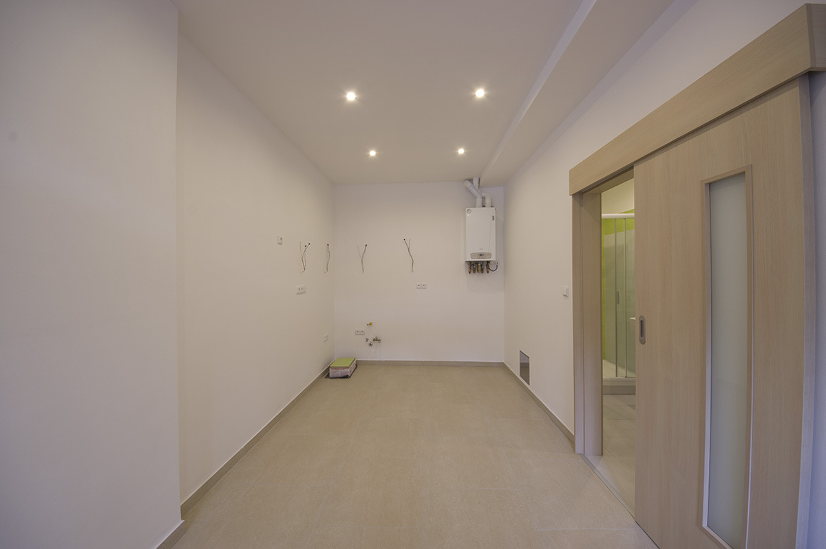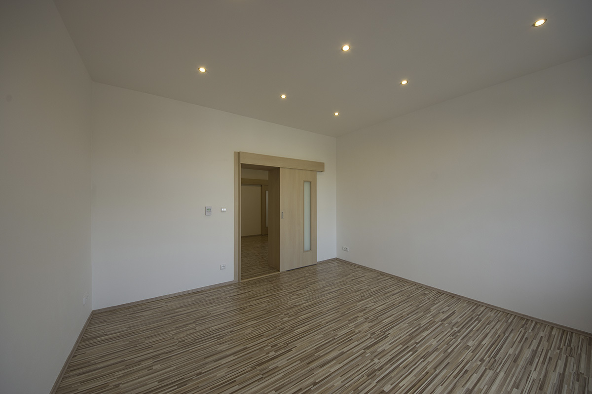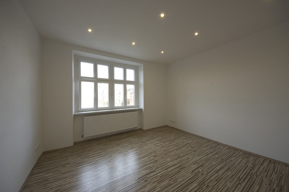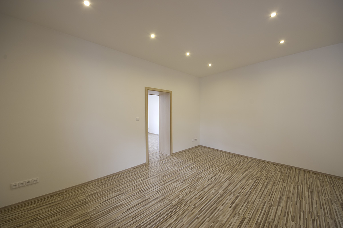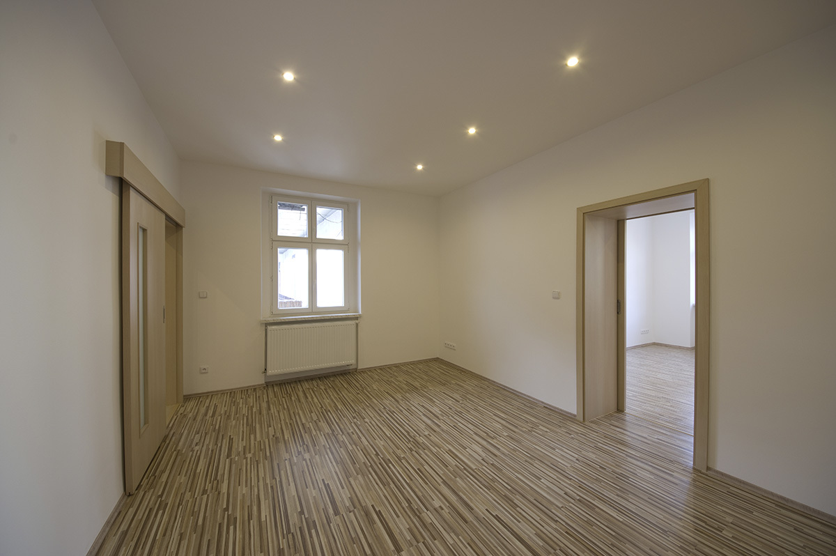 Rozsah prací: celková rekonstrukce bytu 2+1. Vybouraní a pokládka nových podlah, osekání a natažení veškerých omítek, nové rozvody elektřiny, vody, topení a plynu. Sádrokartonové podhledy. Dodávka a montáž zařizovacích předmětů. Výroba a instalace kuchyňské linky.